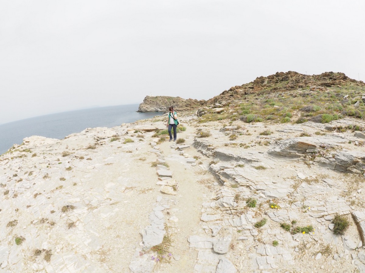 Μισής ώρας διαδρομής πάνω στο μονοπάτι του βράχου χρειάστηκε για να πατήσουμε στο φάρο, από το δρόμο. Στέκουμε ομπρός, χαιρετούμε το καράβι που περνά μεσοπέλαγα, αγναντεύουμε ολόγυρα και ανασαίνουμε την ανάσα της θάλασσας. Δέκα λεπτά καλής χαλάρωσης για το μυαλό που ξεχνά τα πάντα!