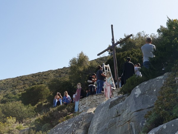 Εδώ με ευλάβεια οι πιστοί αναπαριστούν με τον ιερομόναχο την Σταύρωση πάνω στο βουνό και μετά την αποκαθήλωση του Κυρίου. Το μοναστήρι είναι γιομάτο μελίσσια, που όμως αγιασμένα δεν ενοχλούν κανένα. Η αναπαράσταση του θείου δράματος και ο λόγος του ιερέα για την σταυρική αγάπη, συγκινούν κάθε πιστό.
