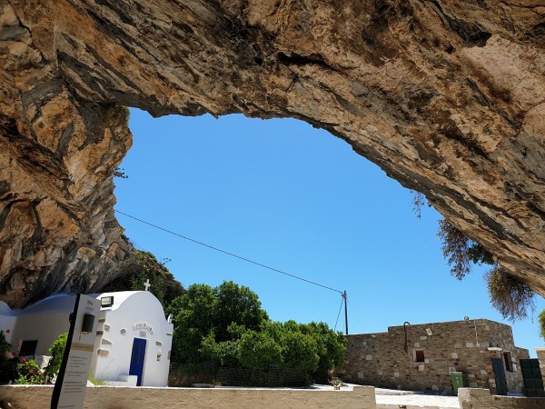 Κρυμμένο από τα χαμηλά, γαντζωμένο στη μέση του βουνού, το σπήλαιο σε περιμένει να το εξερευνήσεις. Μπαίνοντας σε αγκαλιάζει δίπλα στο άσπρο ξωκλήσι του κι ευθύς σε βάνει στα απότομα σπλάχνα του.